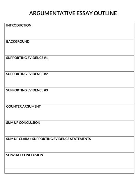 The outline template for essay is widely used by academic writers to do such assignments.